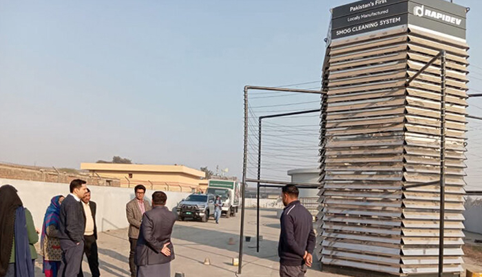 Our R&D team spent two years designing and manufacturing Pakistan’s first Anti‑Smog Tower, which was successfully deployed in late 2024 under a demonstration agreement with the Environmental Protection Agency (EPA) at Mahmood Booti, RUDA Industrial Zone, Lahore. The project was inaugurated by EPA Director General Mr Imran Sheikh.